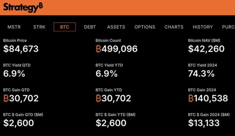 Currently, Strategy's total Bitcoin holdings amount to 499,096 coins.