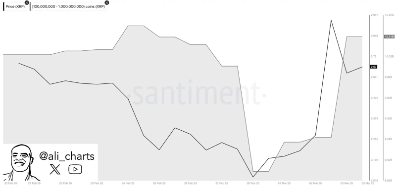 On the 3rd (local time), cryptocurrency analyst Ali Martinez announced via X that "whales purchased $1 billion worth of XRP over the past 24 hours."