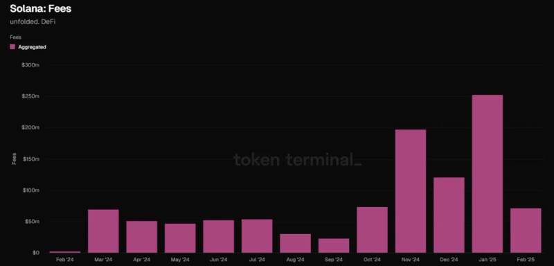On the 4th (local time), Unfolded revealed through X that "Solana network's fee revenue in February was $71 million" and that "this is a 4-month low."