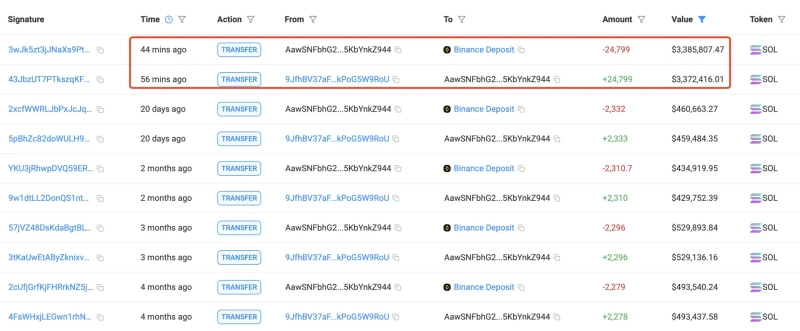 - Of this amount, 25,000 SOL was deposited to Binance, and the report noted that the market is watching for potential impacts from selling pressure.