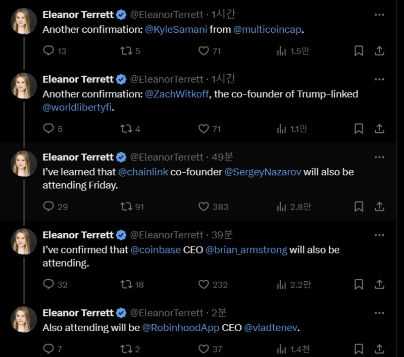 On the 4th (local time), Fox Business News' Eleanor Terrett confirmed that Brian Armstrong will participate in the summit.