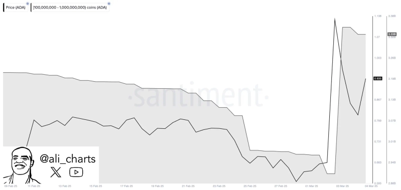 On the 5th (local time), cryptocurrency analyst Ali Martinez revealed via X, "After Trump's strategic reserve asset statement, whales have accumulated more than 420 million ADA."