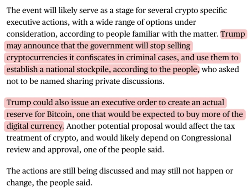 "Trump Reviewing Executive Order for Bitcoin Stockpiling... Possible Announcement Tomorrow"