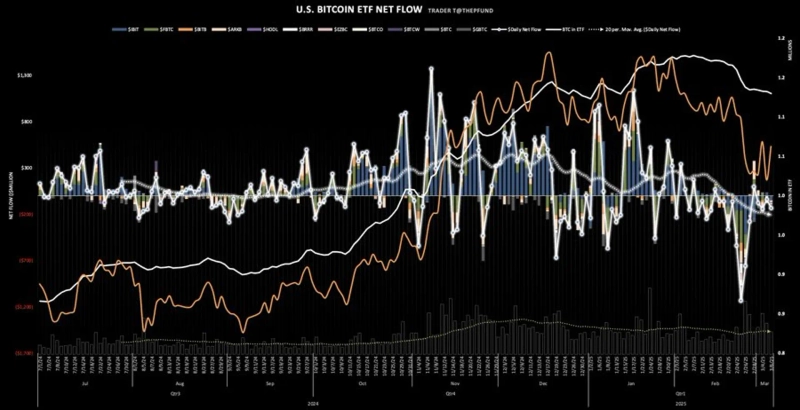 - BlackRock's IBIT, Grayscale's GBTC, ARK Invest's ARKB and others recorded net outflows, raising concerns about changing investor interest.