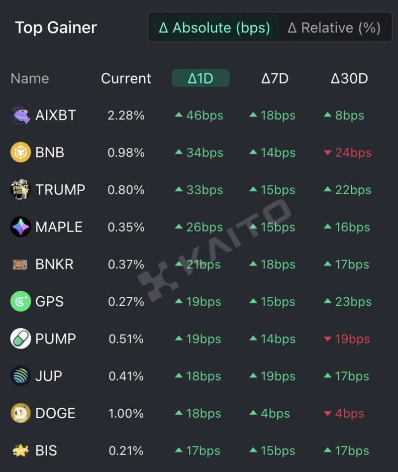 [Today's Global Trending Coins] AIXBT·BNB·TRUMP·MAPLE·BNKR and more