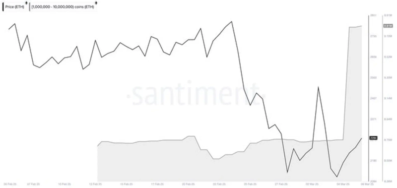 According to Santiment, a virtual asset (cryptocurrency) data analytics firm on the 8th, whales reportedly accumulated 1.1 million Ethereum over the past 48 hours.