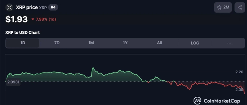 With today's decline, XRP has dropped below $2 for the first time since last November.