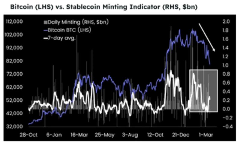 An opinion has emerged that for Bitcoin (BTC) to rise, stablecoin issuance must first increase.