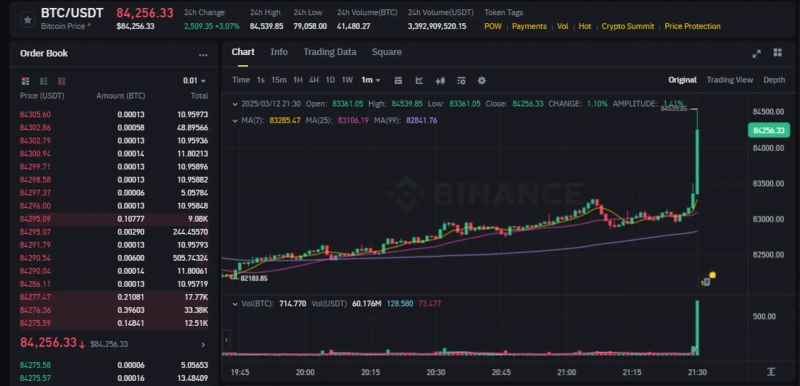 Bitcoin, which was trading at around $83,361 before the indicator release, momentarily touched $84,539 after the CPI announcement. As of 10:30 PM, Bitcoin is trading at $84,256 on Binance's USDT market, up 3.07% from 24 hours ago.