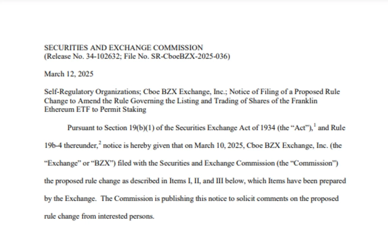 - The SEC confirmed that it has received Franklin Templeton's application for Ethereum ETF staking permission.