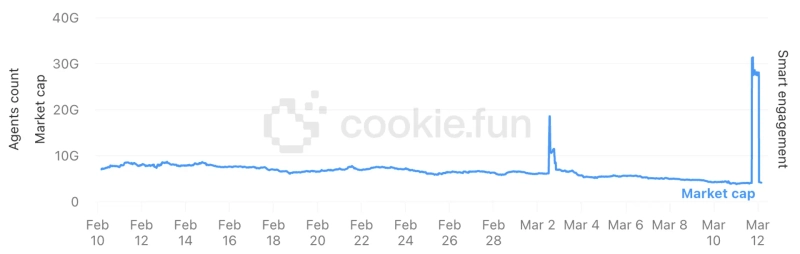 However, AI agent-based digital assets have been struggling recently. Their market capitalization has fallen by nearly 70% from its recent high just this month. Previously, the total market cap of AI agent sector digital assets exceeded $6-7 billion last month. In early November, when Donald Trump first mentioned federal government strategic reserves of digital assets after taking office, the market cap soared to $15.3 billion.