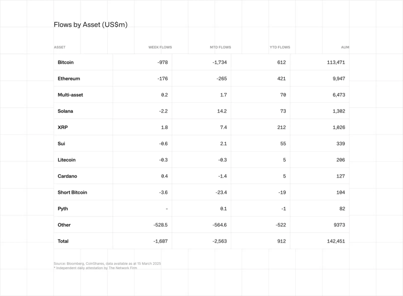 Bitcoin (BTC) products in particular saw strong outflows. According to the report, Bitcoin products experienced a net outflow of $978 million last week, recording a net outflow of $5.4 billion over five weeks. Ethereum (ETH) and Solana (SOL) saw net outflows of $175 million and $2.2 million respectively. However, XRP products recorded a net inflow of $1.8 million.