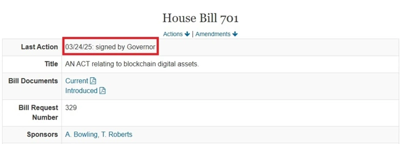 According to Kentucky's official website on the 25th, the HB 701 bill has received the governor's official signature. Previously, on the 14th, the bill passed unanimously in the Senate.