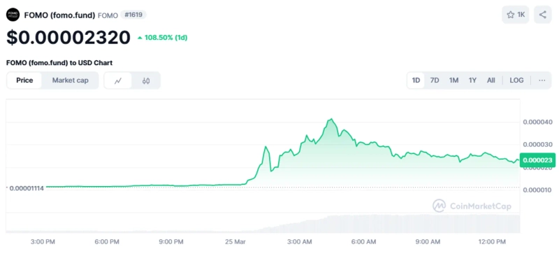 Finally, FOMO took the fifth place. FOMO surged 108.50% in just one day, drawing significant investor attention.