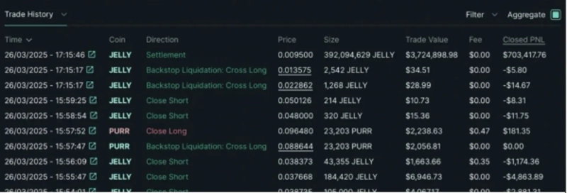 However, Hyperliquid delisted the Jelly futures trading pair without prior notice after Binance's listing announcement. They later stated on X, "Suspicious trading activities suspected of unfair trading were detected, and after a validator vote, we decided to delist the Jelly futures trading pair," adding, "The foundation will fully compensate all affected users." The sudden delisting of futures trading led to the liquidation of positions within the trading pair at the attacker's short position entry price ($0.0095). In this process, the Hyperliquid vault gained a profit of $700,000, while traders with forcibly liquidated positions faced unintended position closures.