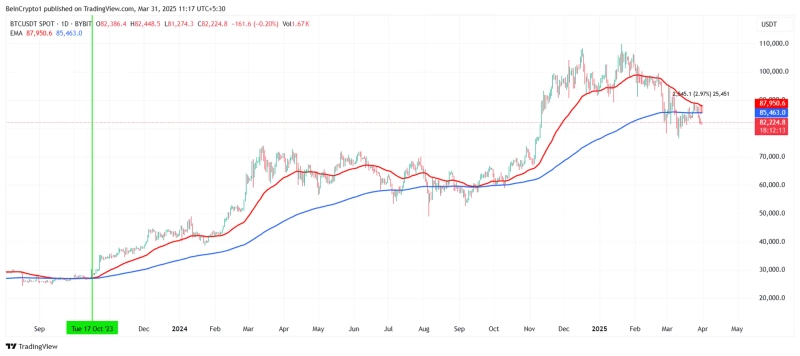 An analysis has emerged that a dead cross for Bitcoin (BTC) is imminent.