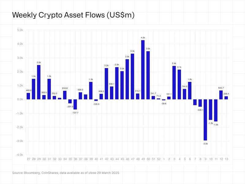 "Last week, $226 million net inflow into virtual asset investment products... for two consecutive weeks"