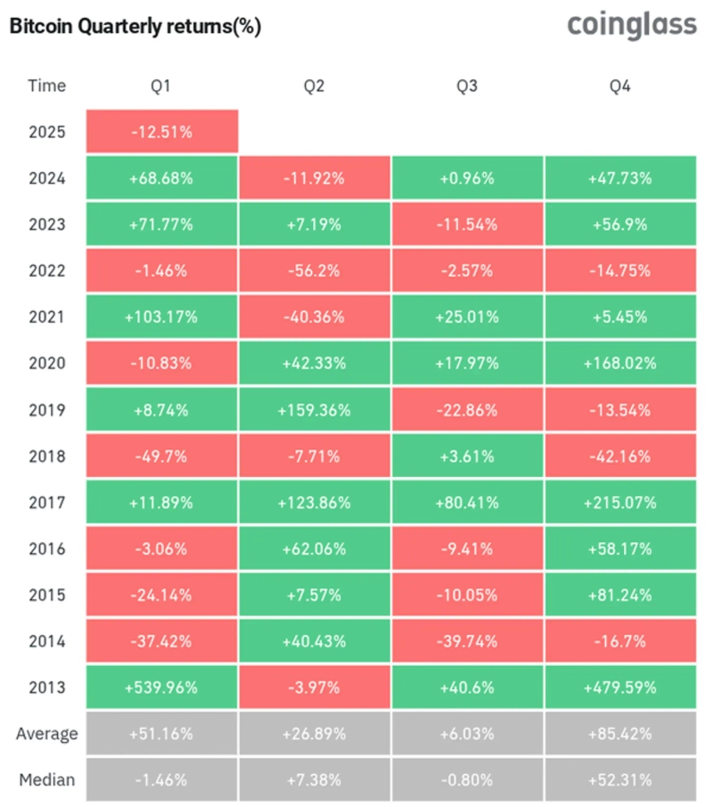 - Bitcoin recorded a 12.5% decline in the first quarter of this year, marking its worst quarter since 2018.
