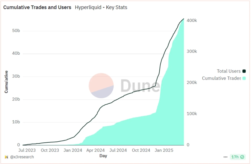According to the cryptocurrency specialist media outlet Cointelegraph on the 31st (local time), Hyperliquid recently recorded a daily trading volume of $4 billion, securing over 60% of the market share among decentralized exchanges. Additionally, Hyperliquid's cumulative number of transactions recently surpassed 50 billion.
