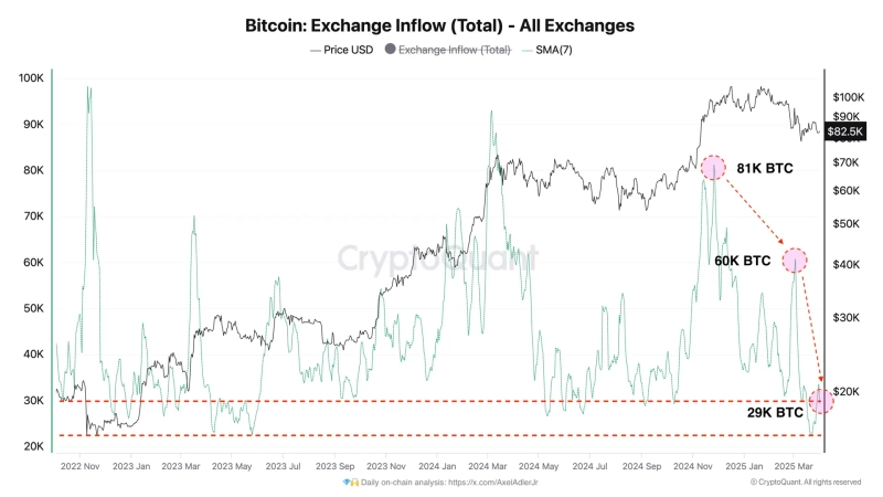 On the 1st (local time), Axel Adler Jr., a contributor to CryptoQuant, stated on X, "The average selling pressure of Bitcoin on major exchanges has significantly decreased," adding, "The selling trend has been exhausted, and an environment conducive to a supply shock has been created." According to CryptoQuant data, Bitcoin's daily selling pressure decreased from the previous 81,000 BTC to 29,000 BTC.