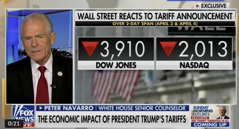 - Peter Navarro, White House Chief Strategist, said "The market is currently declining, but you won't lose money if you don't sell."
