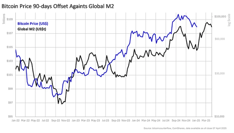 On the 9th (local time), Christopher Bendiksen, an analyst at CoinShares, stated in a report, "Historically, Bitcoin tends to hit all-time highs when global money supply surges," adding, "Since the second half of last year, global M2 has been rising sharply. We can expect a rebound in Bitcoin."