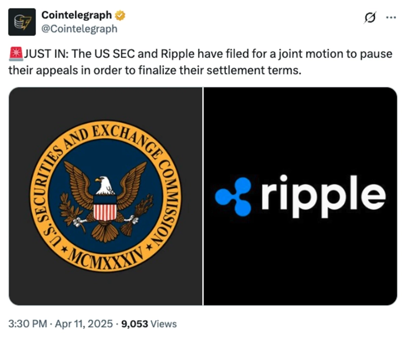 On the 11th, cryptocurrency-focused media outlet Cointelegraph reported via X (formerly Twitter) that "both parties have submitted a joint application to the court to halt the appeal process."