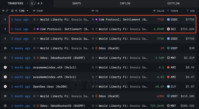 According to Lookonchain on the 12th (local time), World Liberty Financial used approximately 775,000 USDC to purchase 4.89 million Sei.