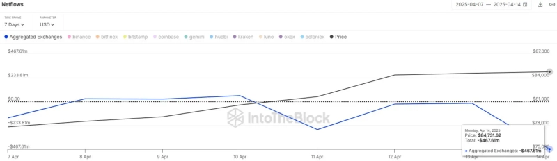 On the 15th (local time), IntoTheBlock stated via X that "more than $467 million (approximately 667.2 billion KRW) worth of Bitcoin was withdrawn from the exchange the previous day," and described it as "evidence that investors are strongly accumulating Bitcoin."