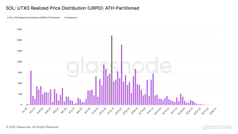 On the 15th (local time), Glassnode stated via X that "according to the UTXO Realized Price Distribution (URPD) indicator, Solana has formed a support line at $129.79," and "32 million SOL (5% of the total supply) was purchased at this price level."