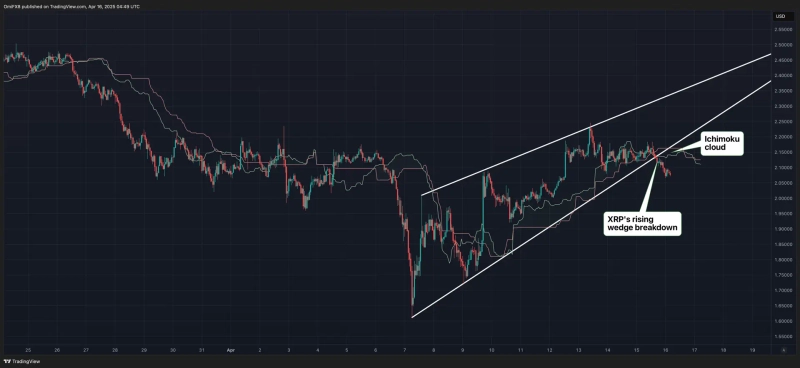 CoinDesk explained, "The starting point of XRP's rising wedge structure can be identified as the support line," adding, "This means XRP could fall to $1.60." It further noted, "XRP also suggested the collapse of the rising wedge by falling below the Ichimoku Cloud on the hourly chart."