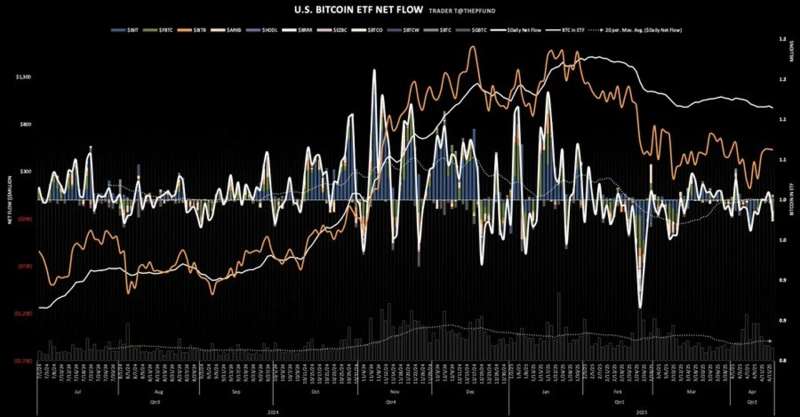 The US Bitcoin (BTC) Spot ETF saw a net outflow of over $100 million the previous day.
