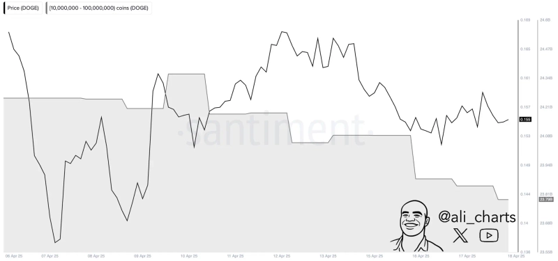 On the 18th (local time), crypto analyst Ali Martinez announced on X (formerly Twitter) that "last week's whale investor sell-off exceeded 570 million DOGE." This amounts to approximately $88.43 million (about 125.9 billion KRW) based on the current Dogecoin price.