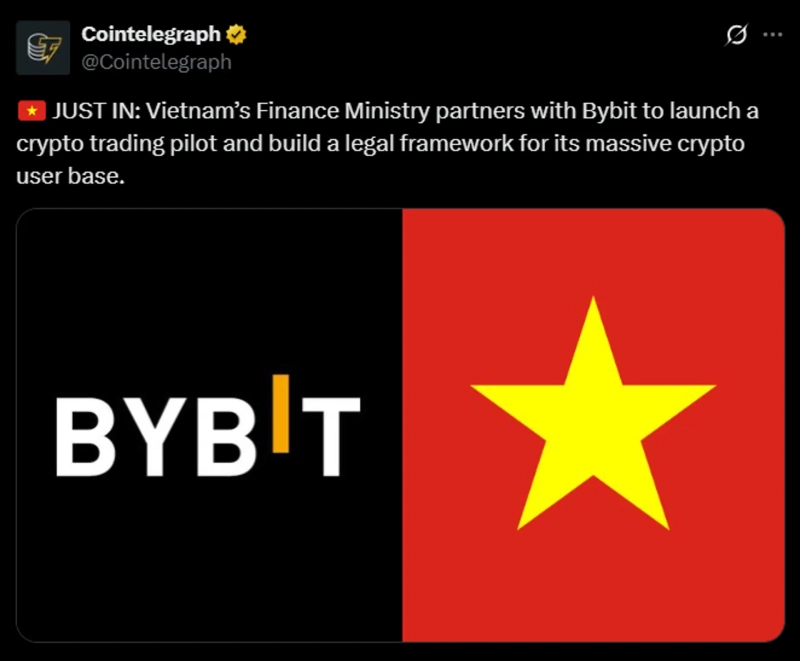 On the 18th (local time), cryptocurrency-focused media outlet Cointelegraph reported via X (formerly Twitter) that the Vietnamese Ministry of Finance is starting a pilot operation of cryptocurrency trading in collaboration with Bybit.