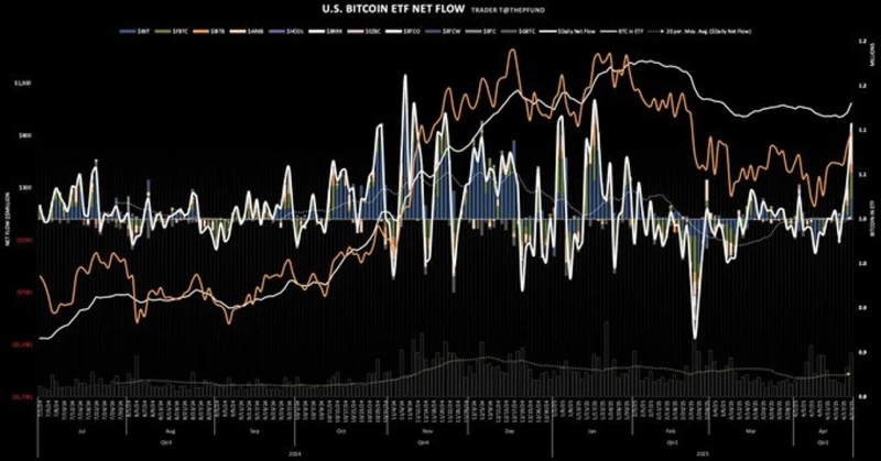 A significant net inflow was recorded in the Bitcoin (BTC) spot Exchange Traded Fund (ETF).
