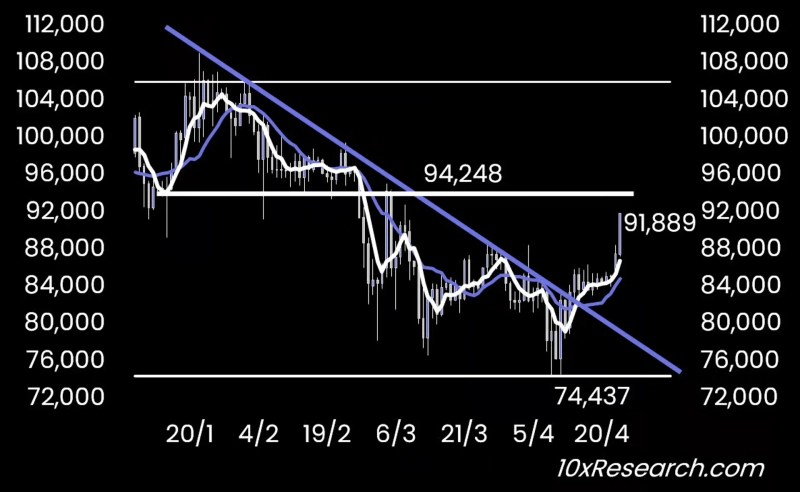 On the 23rd (local time), 10X Research stated in a report, "Bitcoin has escaped the bearish trend and regained its upward trend," adding, "There is a possibility of breaking through the major resistance zone ($95,000) depending on the macro environment and market sentiment." Furthermore, it stated, "$95,000 is a zone with a large number of short positions, and if this point is breached, a price surge may begin," adding, "There is also a very high possibility that Bitcoin will retest $100,000 in the future."