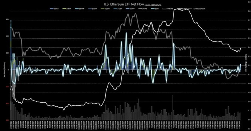 According to TraderT on the 25th (local time), the US Ethereum spot ETF saw a net inflow of $63.53 million (approximately 91.2 billion KRW) the previous day. It shifted back to a net inflow trend just one day after turning to a net outflow.
