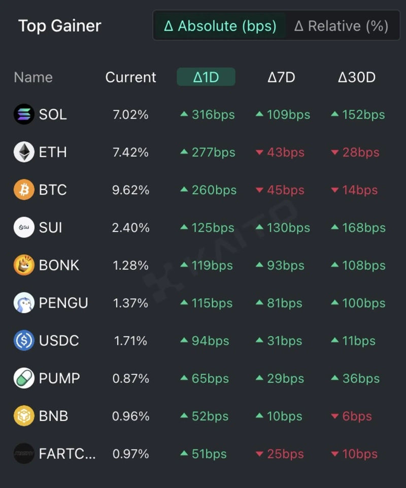 Additionally, investors are showing interest in Bonk (BONK), Pudgy Penguins (PENGU), USD Coin (USDC), Pump (PUMP), Binance Coin (BNB), and Fartcoin (FART).