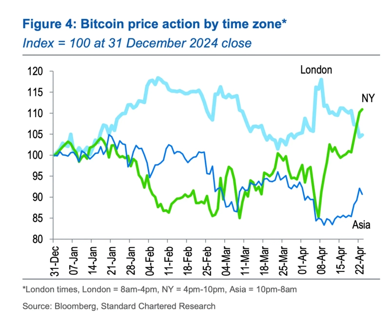 The buying trend among U.S. investors has also increased. SC stated, "Since Trump's tariff policy announcement, Bitcoin has shown a greater increase than U.S. tech stocks," and "hourly trading analysis also shows that U.S. investors are moving away from U.S. assets to buy Bitcoin." Additionally, "Asian investors are also joining in buying Bitcoin, adding to the upward momentum," it added.