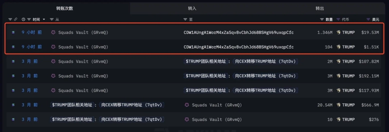 - An address suspected to belong to the Trump team reportedly deposited 1,346,000 Official Trump, equivalent to $19.53 million, into centralized exchanges.