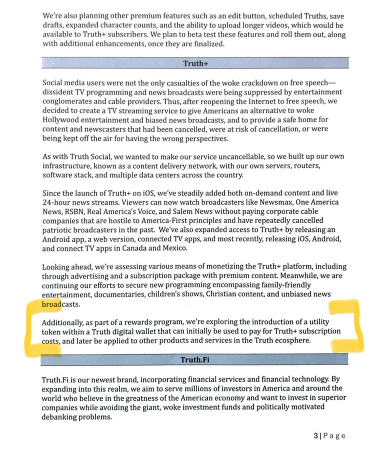 - Trump Media is reportedly considering the potential for subscription payments and various uses through digital wallets and utility tokens.