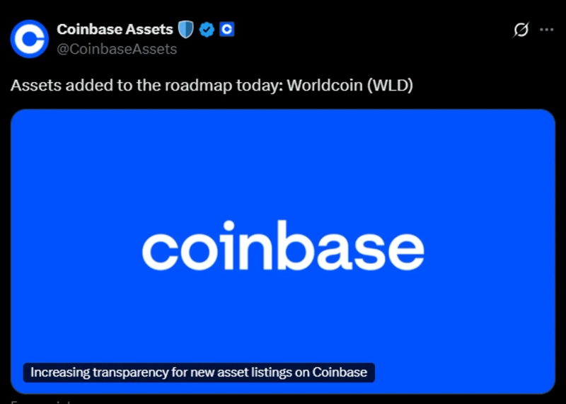 On the 30th (local time), the global virtual asset (cryptocurrency) exchange Coinbase announced that it plans to list Worldcoin (WLD). Trading will begin later that day if liquidity conditions are met. Previously, Coinbase had announced that it would add WLD to its listing roadmap.