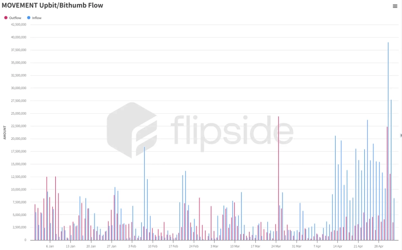 On the 4th (local time), Jae-Woo Cho, director of the Blockchain Research Institute at Hansung University, stated on X (formerly Twitter), "Coinbase has decided to delist Movement," adding, "Since April 12, the influx of Movement into domestic exchanges has significantly increased, necessitating investor caution." He further noted, "The Movement holdings on Upbit and Bithumb have each doubled."