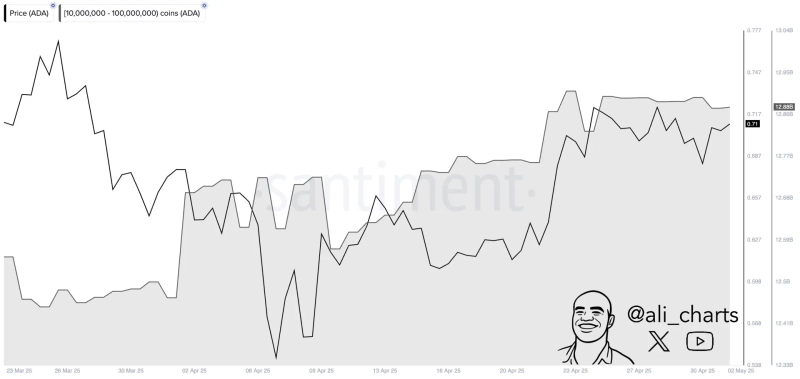 On the 4th (local time), cryptocurrency analyst Ali Martinez announced on X (formerly Twitter) that "whales accumulated more than 410 million ADA in April." This amounts to $284.83 million (approximately 399.5 billion KRW) based on the current ADA price.