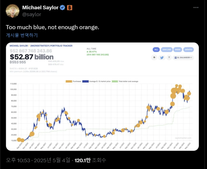 On the 4th (local time), Michael Saylor, CEO of Strategy, posted the Saylor Tracker Chart on X (formerly Twitter).