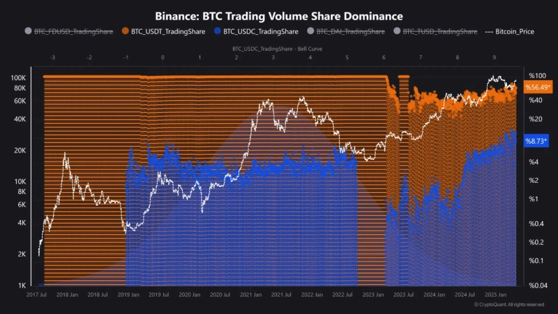 On the 5th, a Crazzyblockk CryptoQuant contributor analyzed in a report that "recent data shows a significant increase in the share of stablecoin pairs in Binance's Bitcoin (BTC) spot trading."