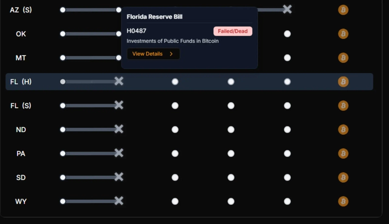 Florida is not the only state to withdraw the strategic Bitcoin reserve bill. So far, Wyoming, South Dakota, North Dakota, Pennsylvania, Montana, and Oklahoma have also rejected state strategic Bitcoin reserve bills.
