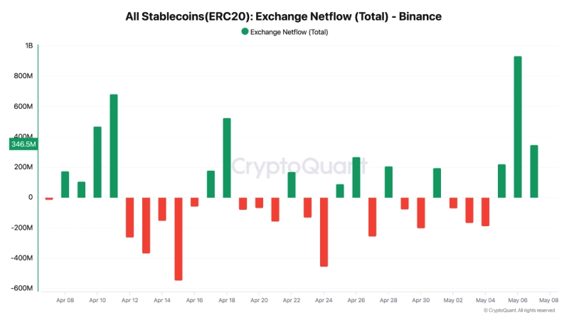 It has been observed that the inflow of stablecoins to the global cryptocurrency exchange Binance is surging.