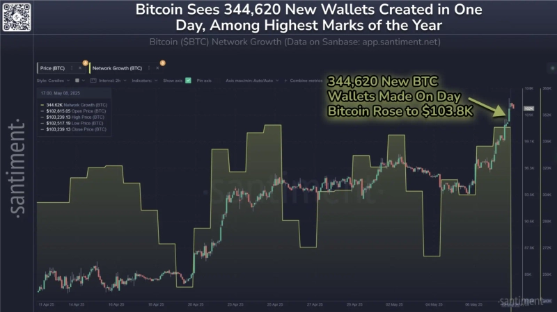 - Bitcoin surpassed $103,000 for the first time since January, with over 340,000 new Bitcoin wallets created in a day.