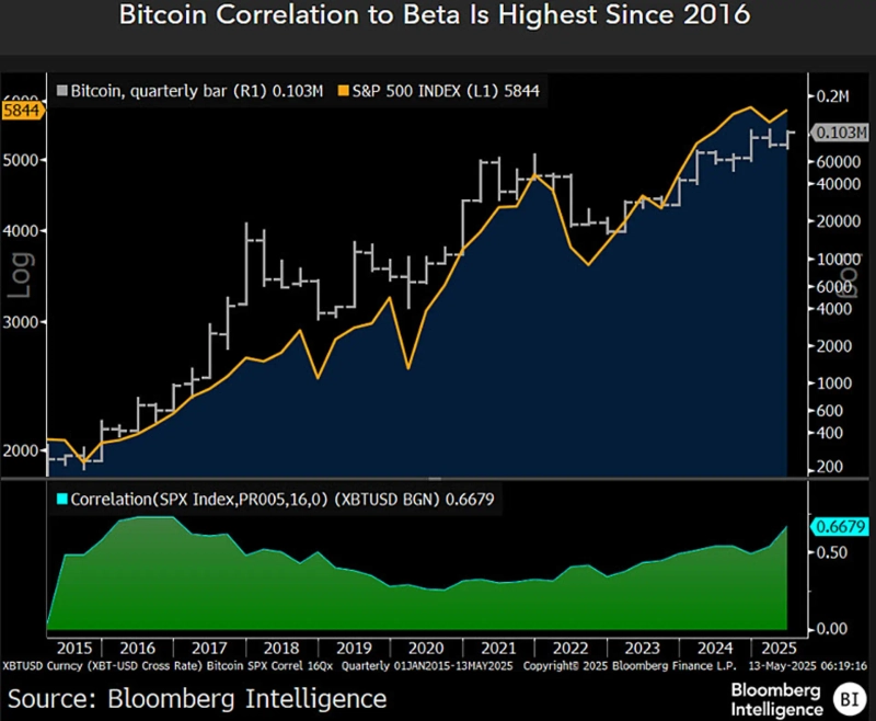 On the 13th (local time), Mike McGlone, Senior Macro Strategist at Bloomberg Intelligence, stated on X (formerly Twitter), "Bitcoin currently has a high correlation with the S&P500, and this figure continues to rise," adding, "It is closer to a leveraged beta asset than digital gold." He further explained, "The Bitcoin beta indicator for the S&P500 is about 3 times, while gold is about 1 time," and added, "The important factor for Bitcoin's rise is the stock market."